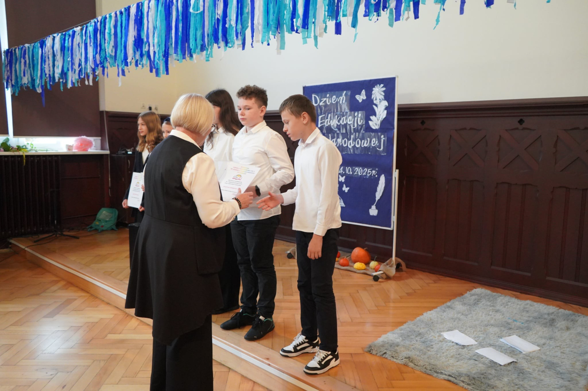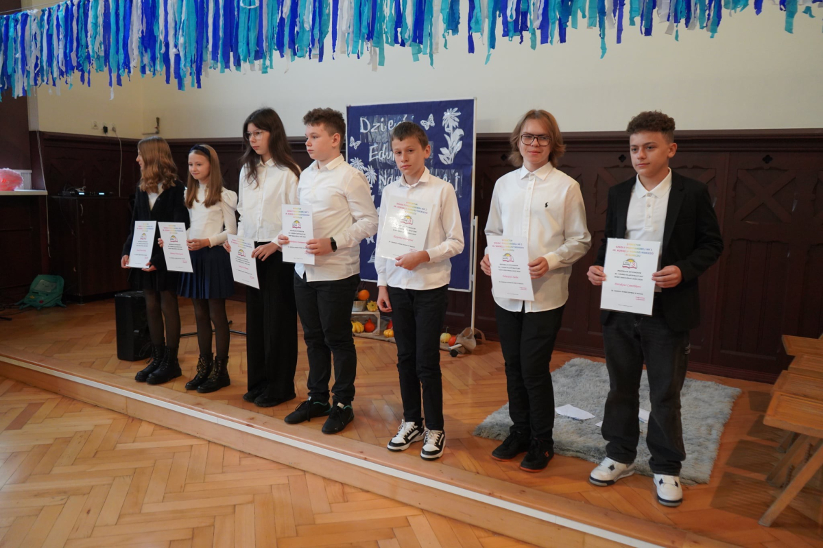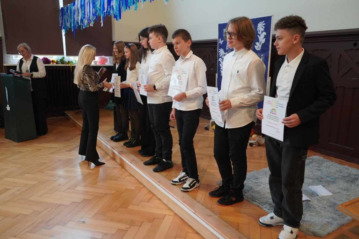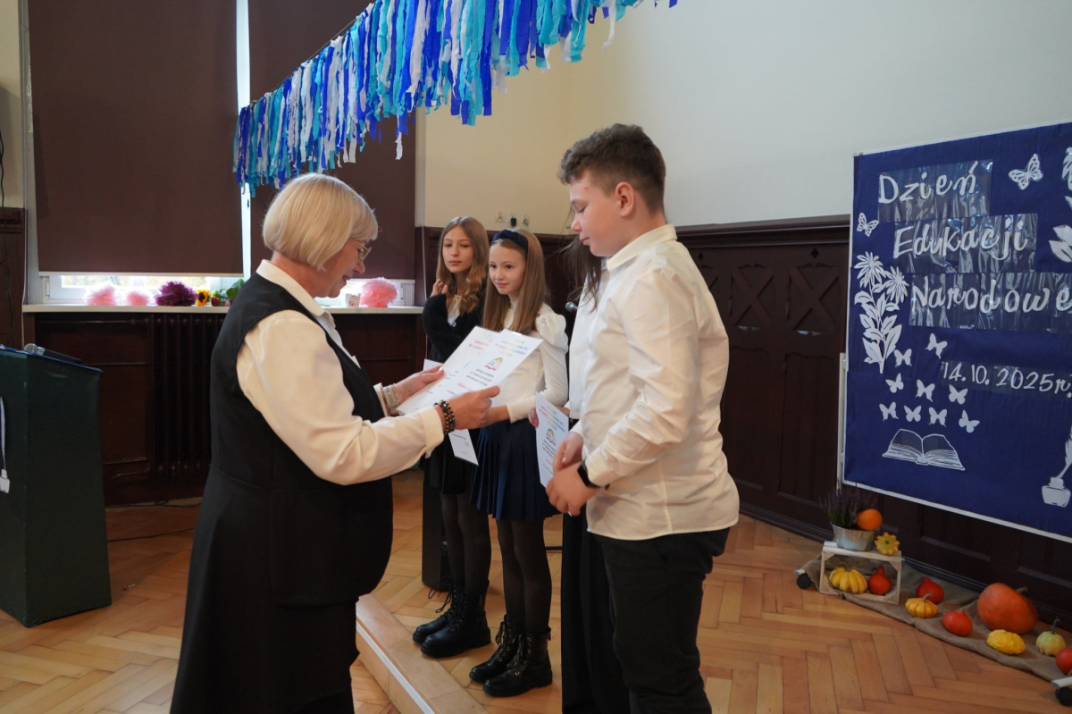 Wczoraj w naszej szkole obchodziliśmy Dzień Edukacji Narodowej, potocznie nazywanym Dniem Nauczyciela. To szczególne święto wszystkich osób, które na co dzień tworzą szkołę - nauczycieli, wychowawców, pedagogów, dyrektorów, pracowników administracji i obsługi, a także uczniów, bez których szkoła nie miałaby sensu. Z tej okazji wszystkim nauczycielom i pracownikom oświaty życzymy dużo zdrowia, cierpliwości i radości z codziennej pracy. Wspaniałą cześć artystyczną zaprezentowali uczniowie z klasy III A i B oraz uczniowie starszych klas Maja Okupnik i Adam Psarski. Podczas akademii zostali również uhonorowani uczniowie, którzy w minionym roku szkolnym osiągnęli wybitne wyniki w nauce, wyróżniali się aktywnością społeczną oraz reprezentowali szkołę w konkursach. Wręczenie stypendiów to nie tylko nagroda za wysiłek, lecz także zachętą do dalszego rozwoju i realizacji marzeń. Gratulujemy wszystkim nagrodzonym - jesteście wzorem dla innych i dumą naszej szkoły!