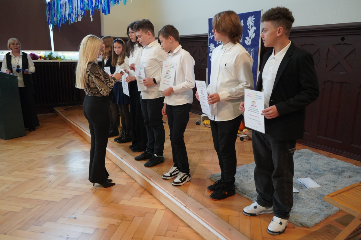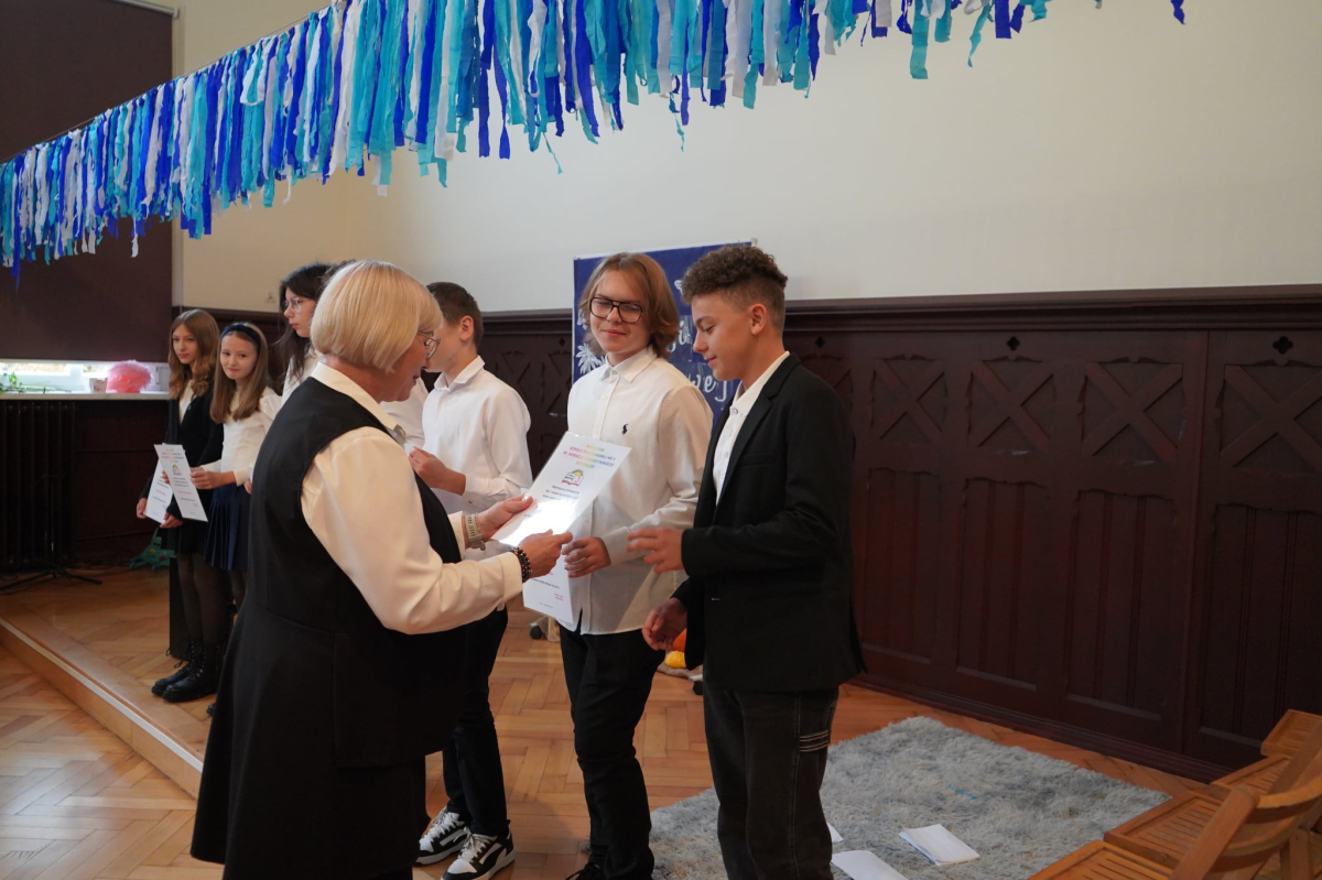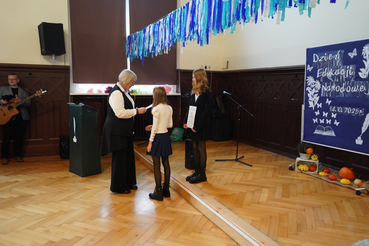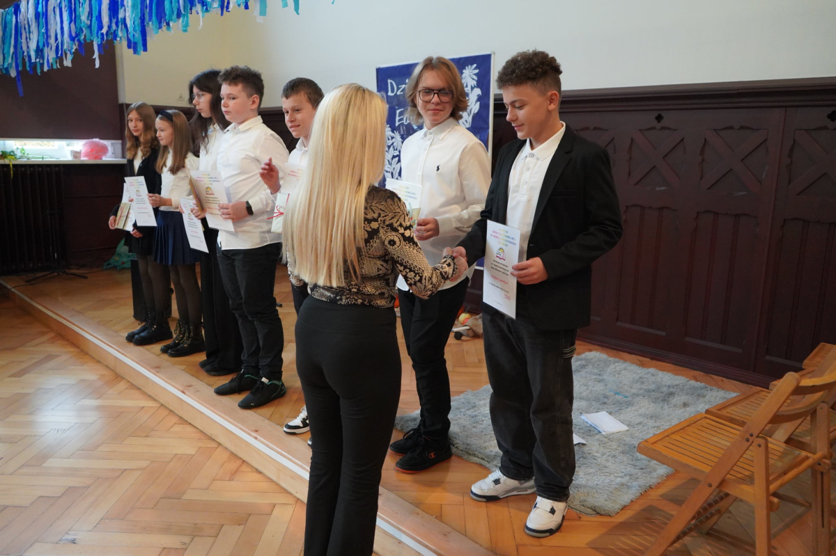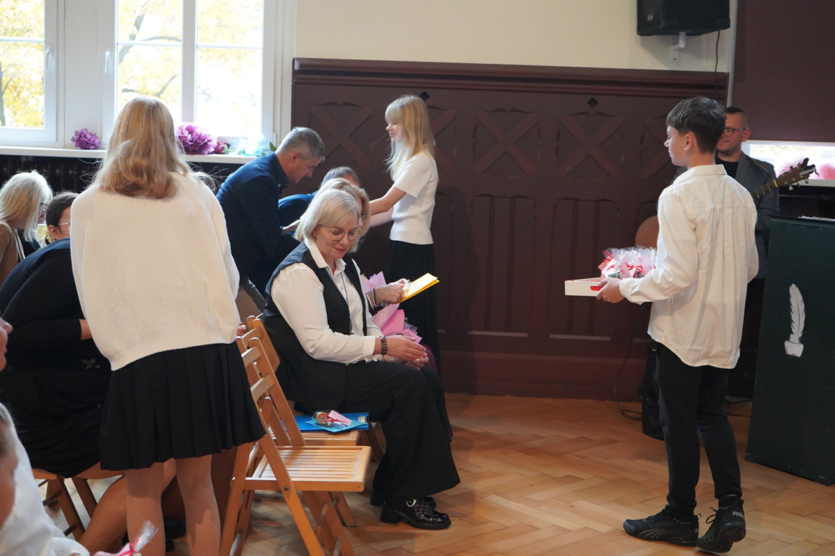 Wczoraj w naszej szkole obchodziliśmy Dzień Edukacji Narodowej, potocznie nazywanym Dniem Nauczyciela. To szczególne święto wszystkich osób, które na co dzień tworzą szkołę - nauczycieli, wychowawców, pedagogów, dyrektorów, pracowników administracji i obsługi, a także uczniów, bez których szkoła nie miałaby sensu. Z tej okazji wszystkim nauczycielom i pracownikom oświaty życzymy dużo zdrowia, cierpliwości i radości z codziennej pracy. Wspaniałą cześć artystyczną zaprezentowali uczniowie z klasy III A i B oraz uczniowie starszych klas Maja Okupnik i Adam Psarski. Podczas akademii zostali również uhonorowani uczniowie, którzy w minionym roku szkolnym osiągnęli wybitne wyniki w nauce, wyróżniali się aktywnością społeczną oraz reprezentowali szkołę w konkursach. Wręczenie stypendiów to nie tylko nagroda za wysiłek, lecz także zachętą do dalszego rozwoju i realizacji marzeń. Gratulujemy wszystkim nagrodzonym - jesteście wzorem dla innych i dumą naszej szkoły!