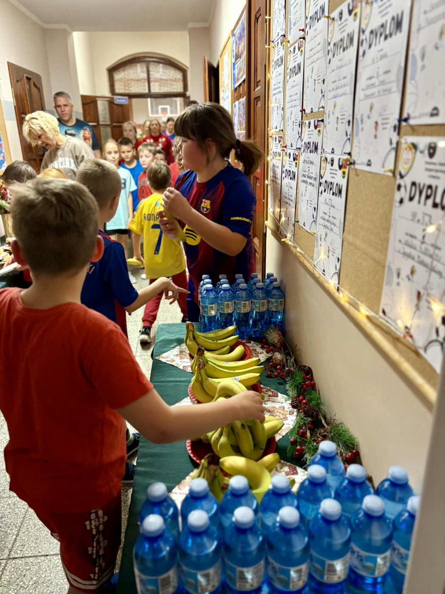 Rodzice mogli zrelaksować się w słodkim kąciku, gdzie czekała na nich kawa i pyszne ciasta. Każdy uczeń otrzymał zdrowego banana, butelkę wody oraz pamiątkowy dyplom za udział.