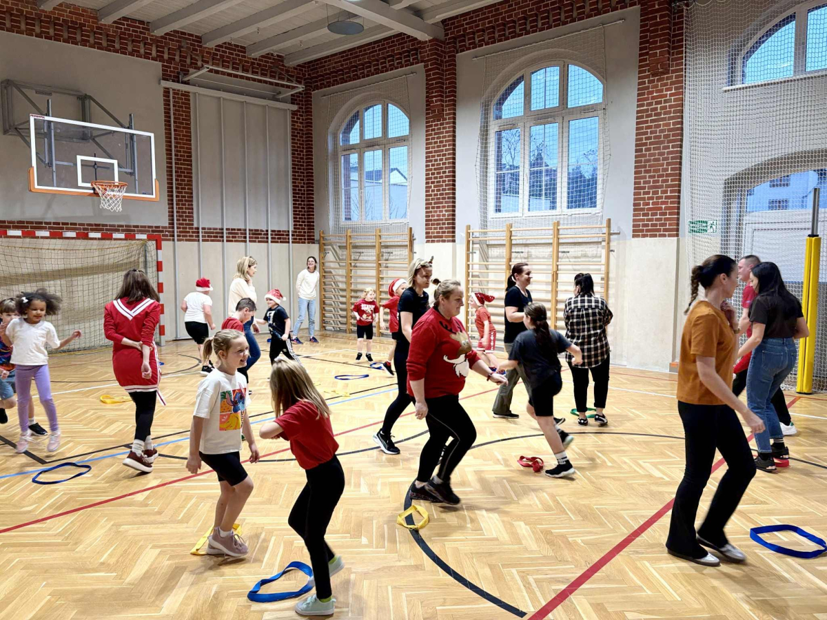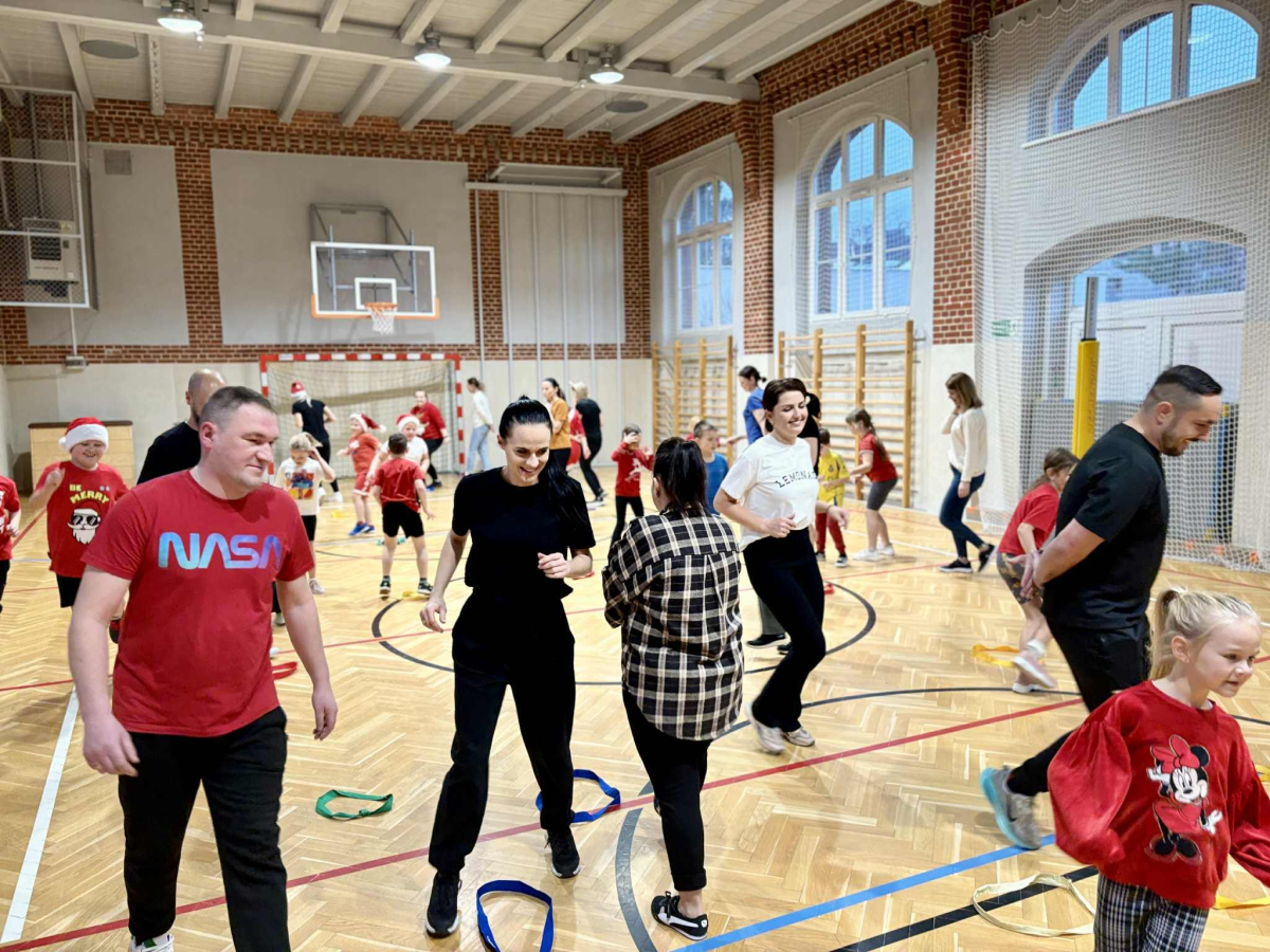 Środowe popołudnie, 3 grudnia, w naszej szkole upłynęło w wyjątkowo miłej i ciepłej atmosferze. Na sali gimnastycznej odbyły się zajęcia sportowe dla uczniów klas 1-3. Tym razem, w związku ze zbliżającymi się Mikołajkami, zajęcia miały specjalny charakter, a uczniowie przybyli wraz ze swoimi rodzicami.