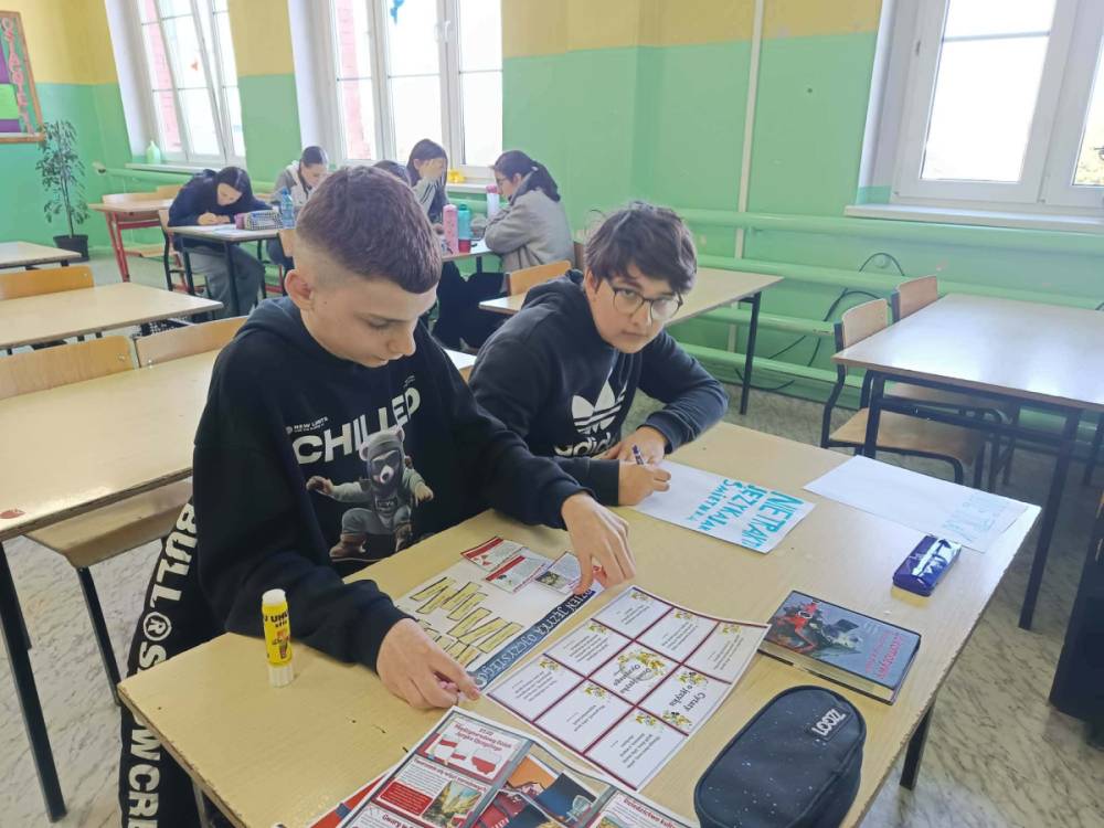 Z tej okazji przygotowano dla uczniów wiele ciekawych zadań do wykonania podczas warsztatów. Jednym z nich było dyktando, w którym uczniowie mogli sprawdzić swoją znajomość zasad ortografii. Nie zabrakło także rebusów, quizów gramatycznych i zabaw, wymagających spostrzegawczości i dobrej znajomości naszego języka.
