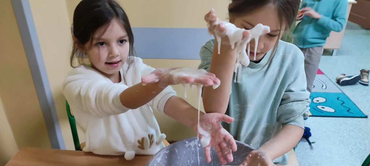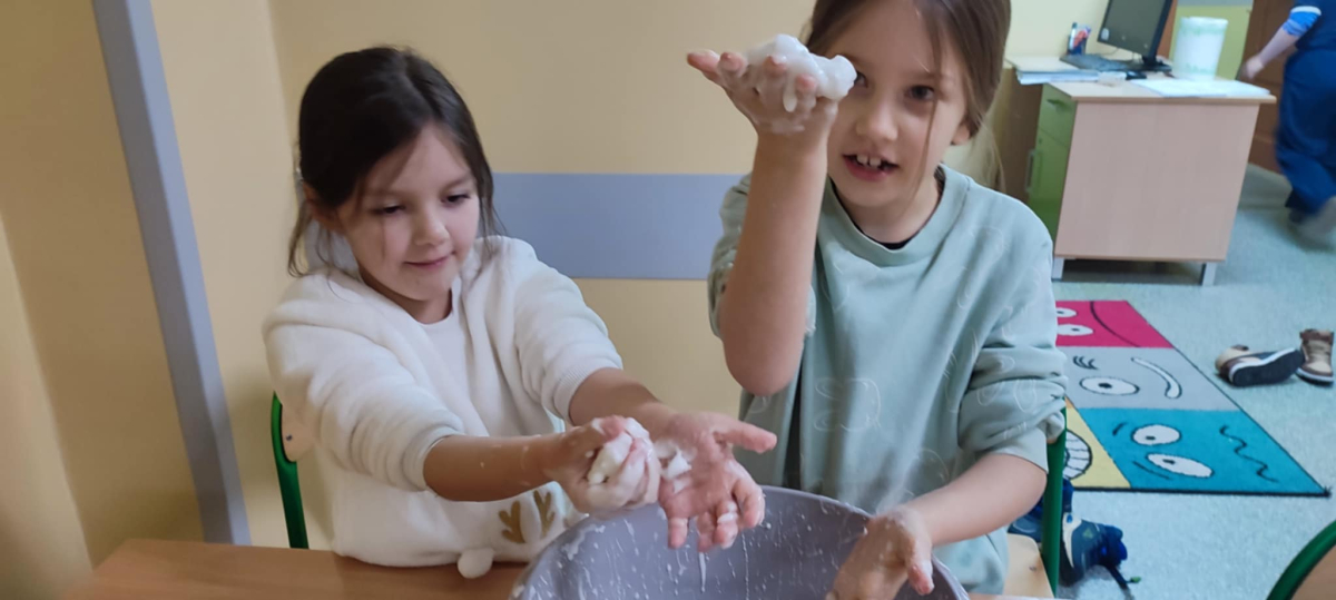 W ramach innowacji pedagogicznych w świetlicy szkolnej eksperymentujemy. Dzieci przeprowadziły ostatnio dwa eksperymenty: "Lampa lawa" i "Nienewtonowska ciecz". W najbliższym czasie czekają nas kolejne ciekawe doświadczenia.