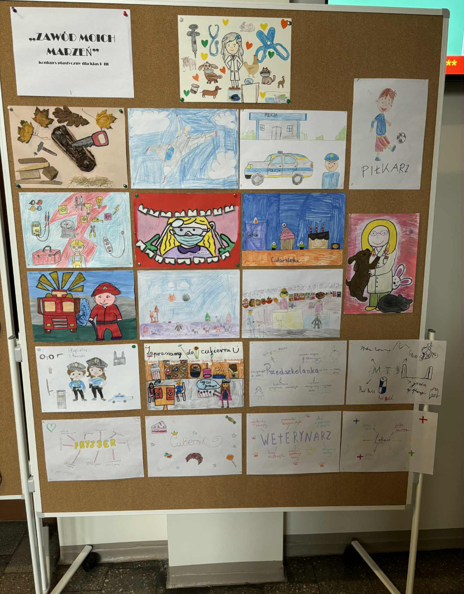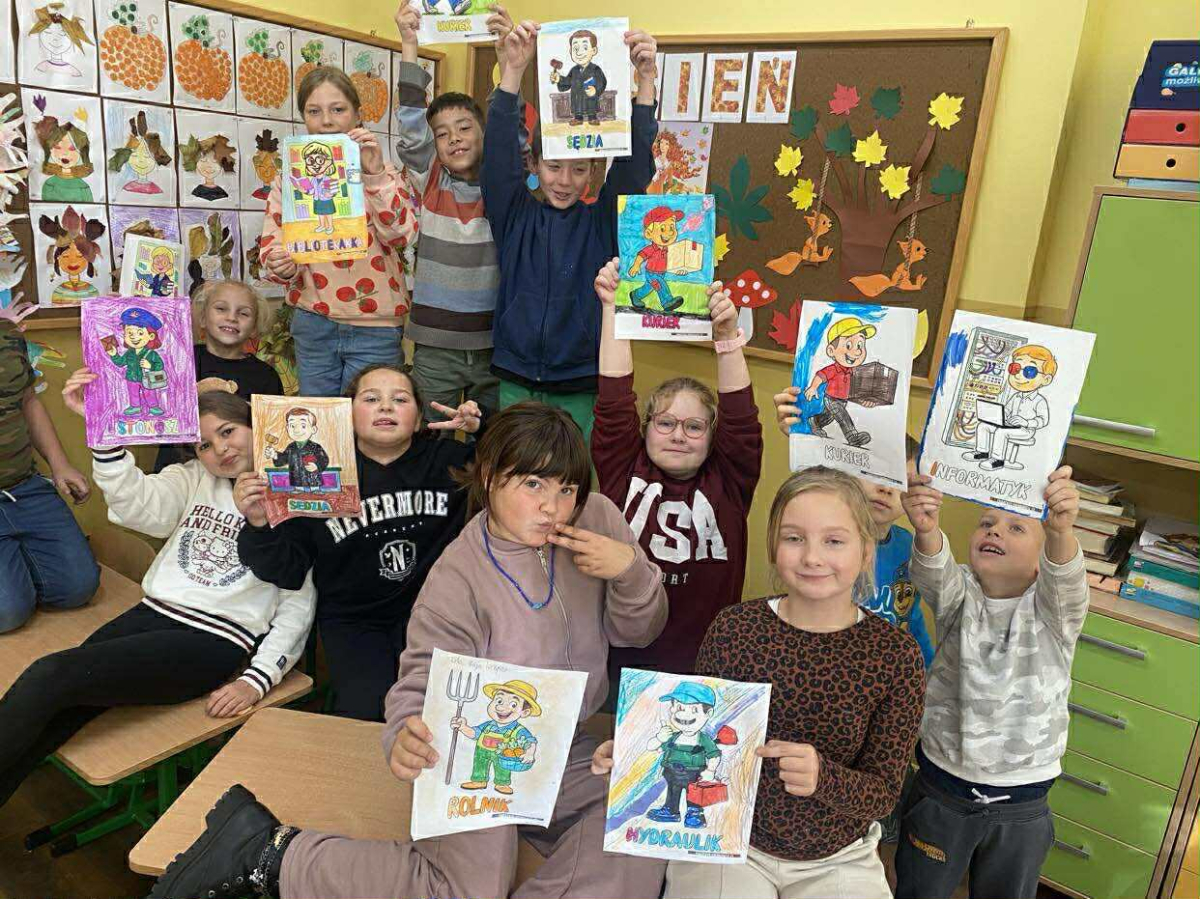 W minionym tygodniu w naszej szkole odbył się Tydzień Kariery, podczas którego uczniowie mieli okazję poznać różne ścieżki zawodowe i rozwijać swoje zainteresowania. Klasy ósme gościły Panią Kierownik Cechu Rzemiosł Różnych w Rawiczu, klasy 4-6 przygotowały sylwetki „ludzi sukcesu”, a klasy 1-3 wzięły udział w konkursie plastycznym pt. „ Zawód moich marzeń”. Pod okiem swoich Pań przygotowali również laurki dla pracowników szkoły.