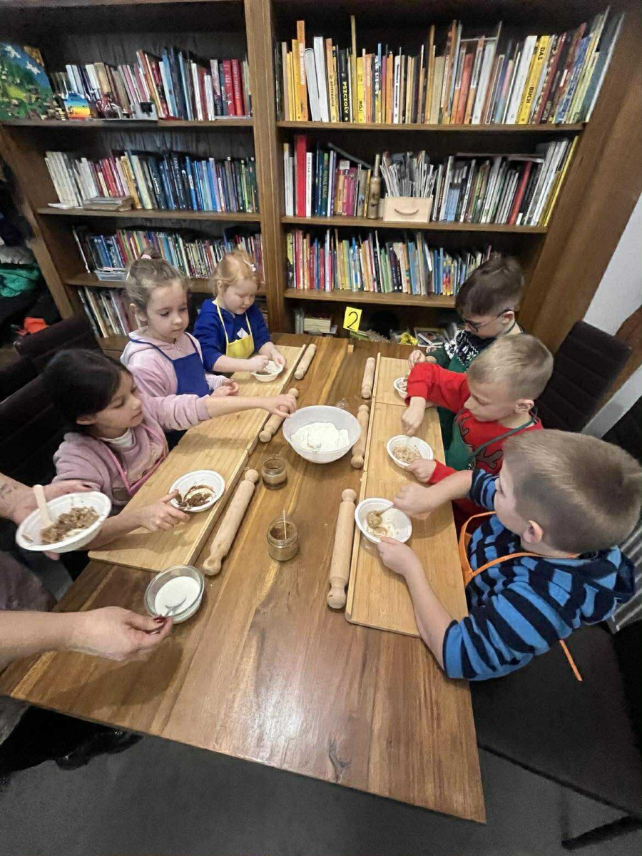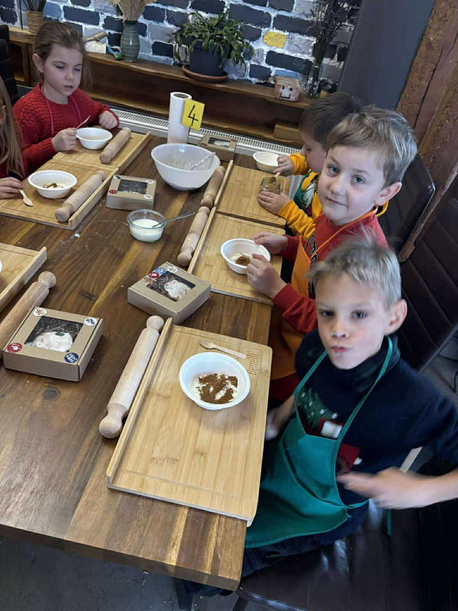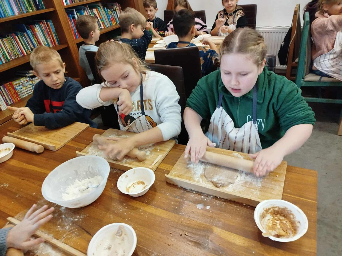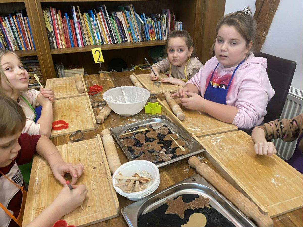 * samodzielne wyrabianie ciasta, wałkowanie i wykrawanie piernikowych kształtów,
