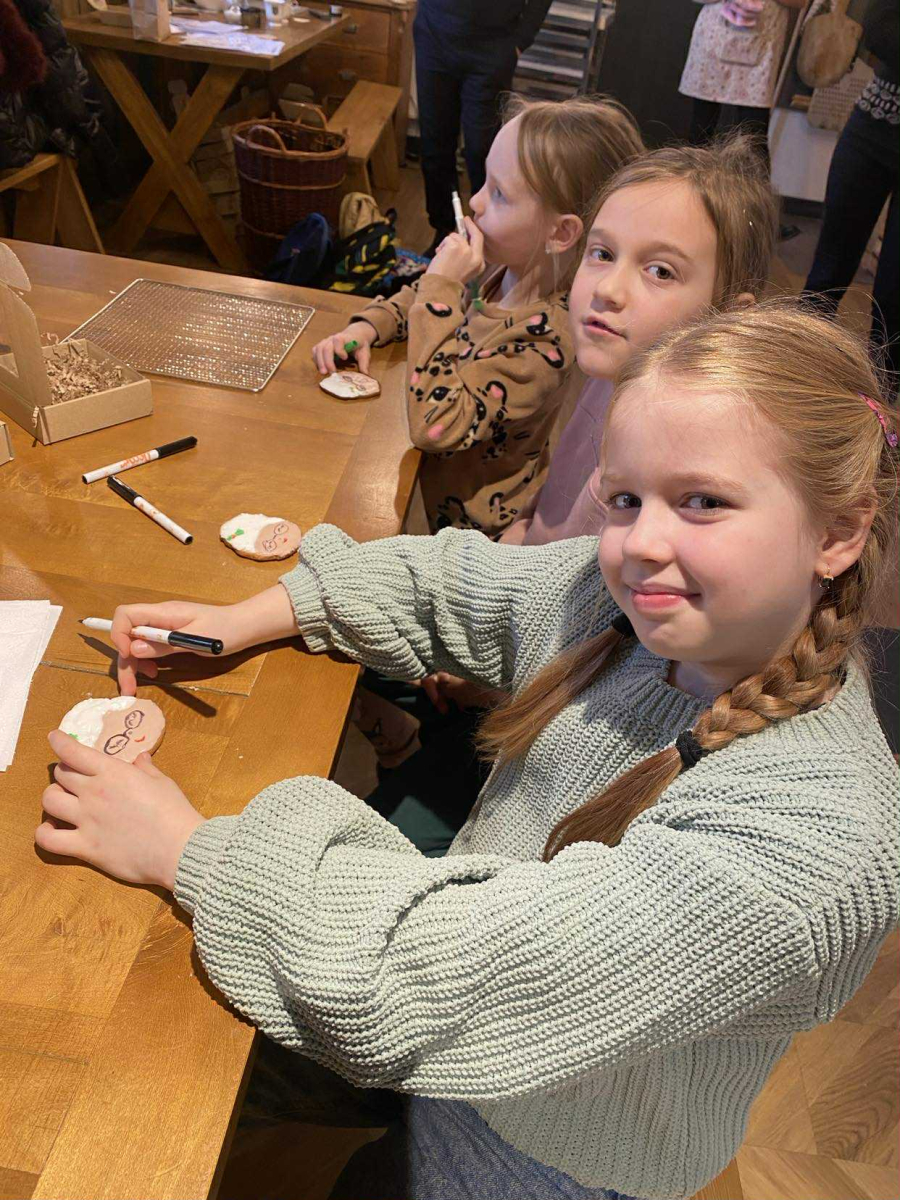 * dekorowanie upieczonych pierników lukrem z białek przy użyciu rękawa cukierniczego.